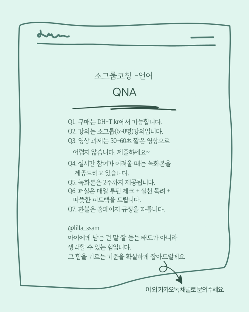 • 소그룹코칭 모집기간에만 신청 및 결제 가능합니다. 모집 기간 이후 취소 불가능!! 꼭 기억해주세요.